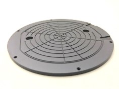 アルミ(A5052)を旋盤、マシニング、研磨にて加工した装置用の精密加工部品ですが、素材に吸着用の溝を彫りこんだ後に平面研削にて平面度・平行度5μm以下という高い精度の加工を実現しています。アルミは展延性の高い難削材でありバリが発生しやすい特徴があります。また溝を彫りこんだ後の加工であるため上記公差をクリアすると同時に溝部のバリ発生を極限まで抑えた高度な加工技術が必要です。